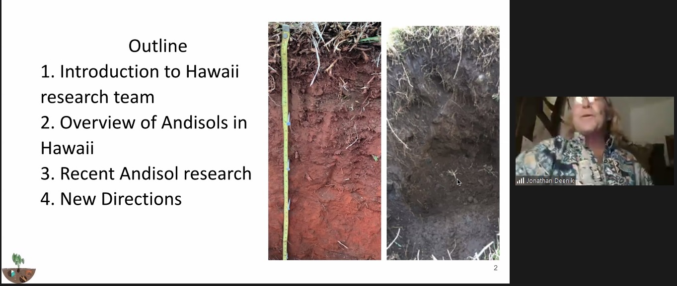 El pasado jueves 14 de octubre se realizó una nueva sesión del Seminario Internacional organizado por el proyecto Red Internacional de Calidad Física para el estudio de Suelos Volcánicos (REDES 180168). En la ocasión, los investigadores Dr. Jonathan Deenik  y Dra. Susan Crow, de la University of Hawaii, expusieron la charla «Andisols of Hawaii: Insights, challenges, and opportunities to better understand unique properties and behavior».