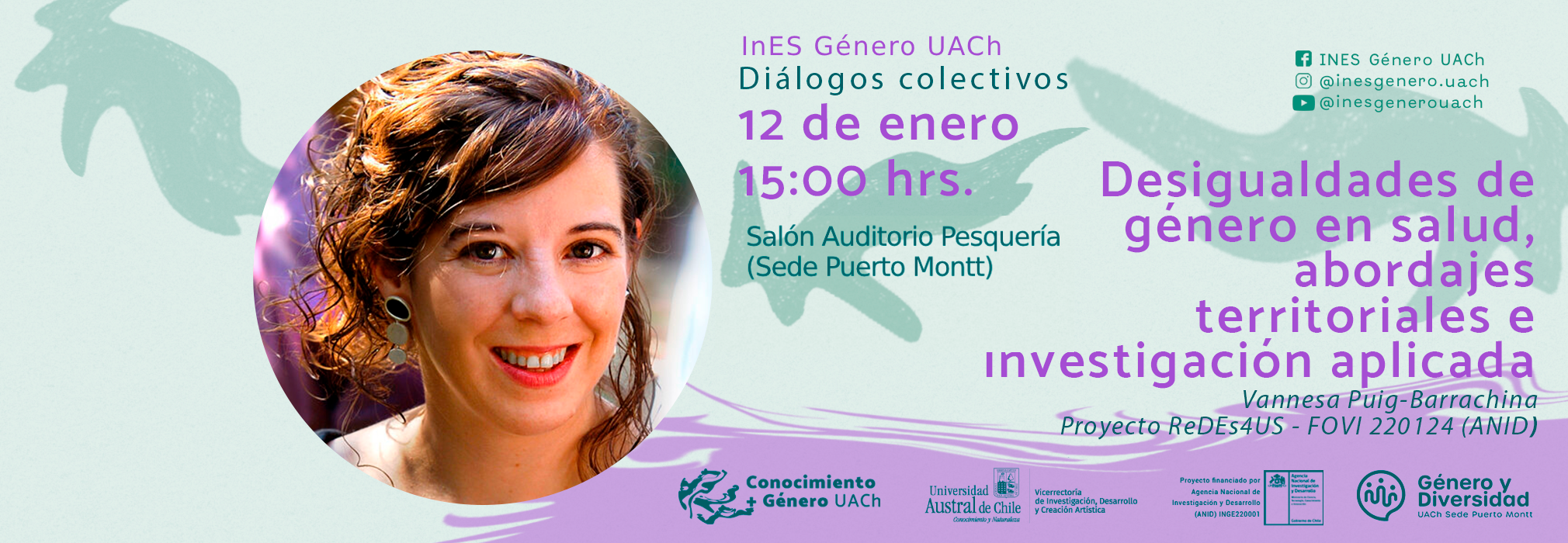 Banner InES Género UACh presenta en la Sede Puerto Montt “Diálogos colectivos: Desigualdades de género, salud, abordajes territoriales e investigación aplicada” Publicado en Sin categoría.