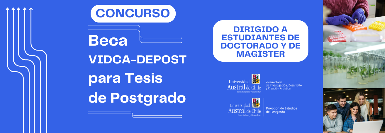 La Vicerrectoría de Investigación, Desarrollo y Creación Artística y la Dirección de Postgrado tienen el agrado de informar sobre la apertura del concurso “Beca VIDCA-DEPOST para Tesis de Postgrado”. Este beneficio está dirigido a estudiantes de Doctorado y de Magíster, la beca busca apoyar a la comunidad estudiantil que se encuentran en la etapa final de sus estudios de postgrado y que han mostrado durante sus estudios una vocación dirigida hacia la investigación.