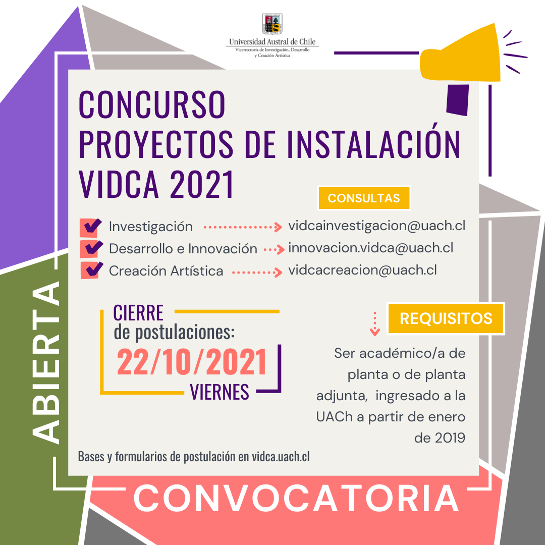 Postulaciones hasta al 22 de octubre 2021 La Vicerrectoría de Investigación, Desarrollo y Creación Artística (VIDCA) abre la convocatoria a […]