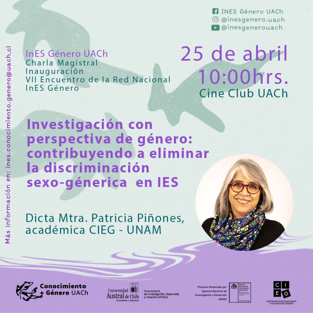La invitada internacional es parte de la UNAM, institución colaboradora del proyecto InES Conocimiento + Género UACh. Las líneas de investigación de Patricia Piñones son: género, incorporación de la perspectiva de género, pedagogías feministas decoloniales e interseccionales.