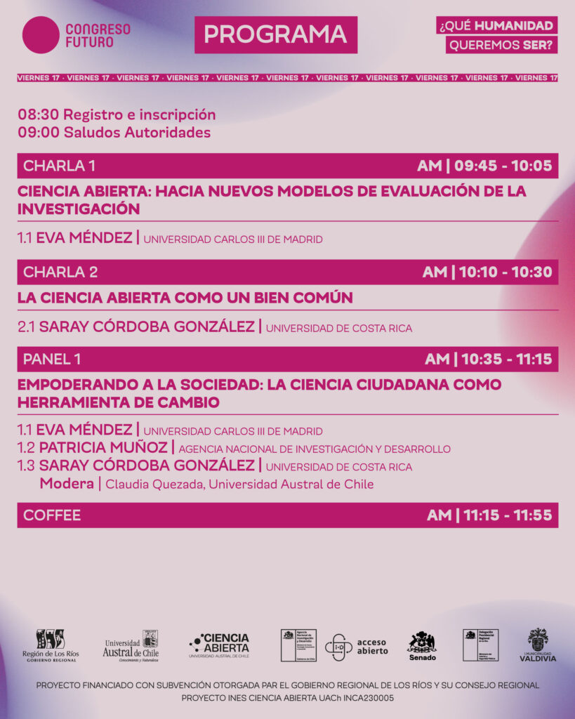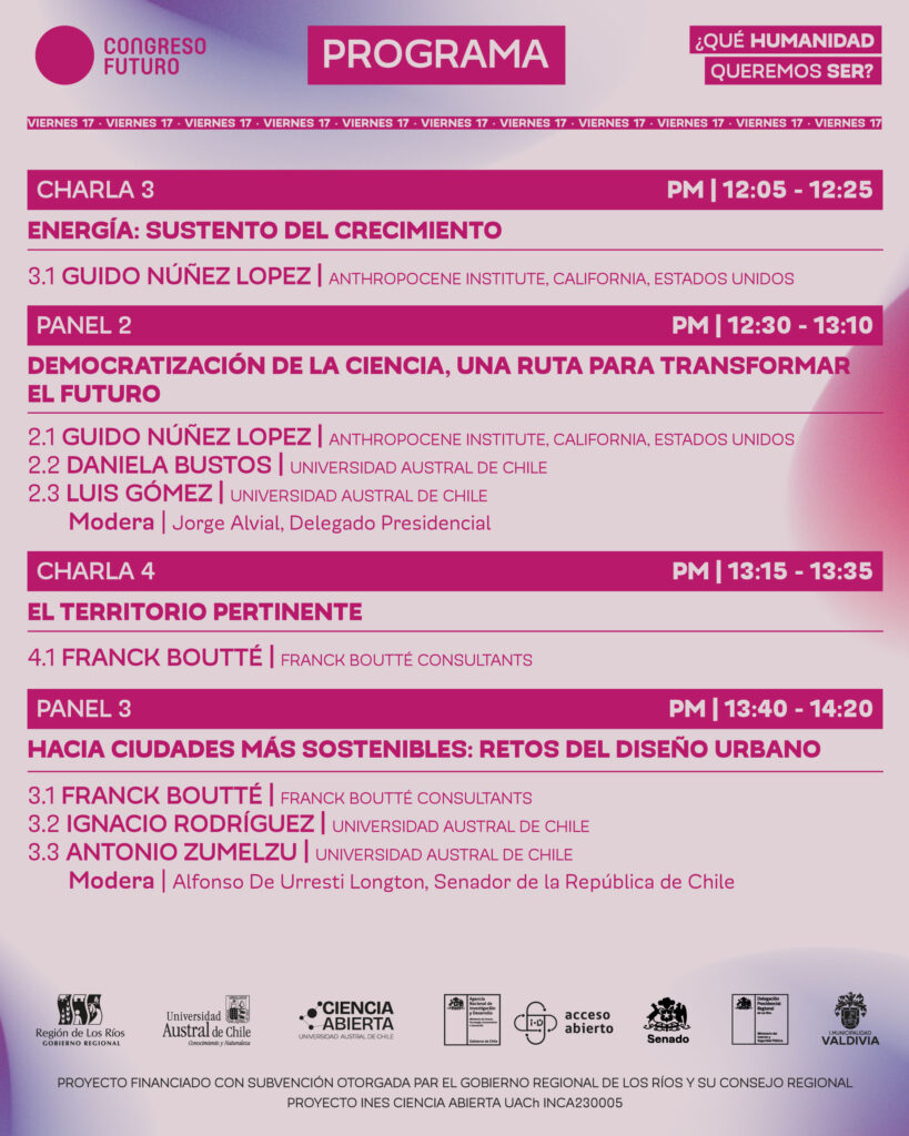 Para celebrar los diez años de Congreso Futuro en Los Ríos, los temas que se tratarán se centrarán en la democratización de la ciencia, ciencia ciudadana y los retos del diseño urbano, considerando que nuestra ciudad está siendo postulada para ser “Ciudad Humedal”.