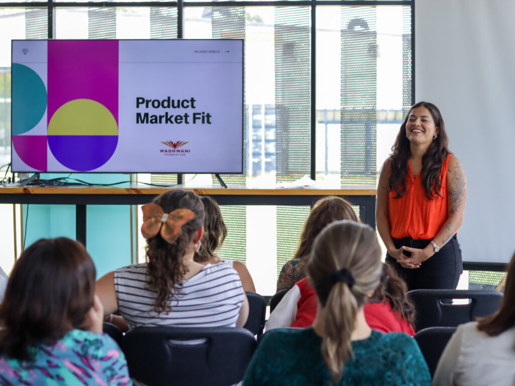 Más allá de la teoría, el taller dirigido por Andrea Rioseco, Directora de Alianzas Estratégicas para América Latina en Fundación Wadhwani, permitió a las emprendedoras identificar a sus clientes ideales, ajustar sus propuestas de valor y definir métricas clave para validar la aceptación de sus productos en el mercado. «Ponerle nombre a lo que hacemos nos empodera y nos permite tomar decisiones con más seguridad», destacó Rioseco, quien enfatizó la importancia de validar, ajustar y fortalecer sus propuestas para asegurar su crecimiento en el mercado.