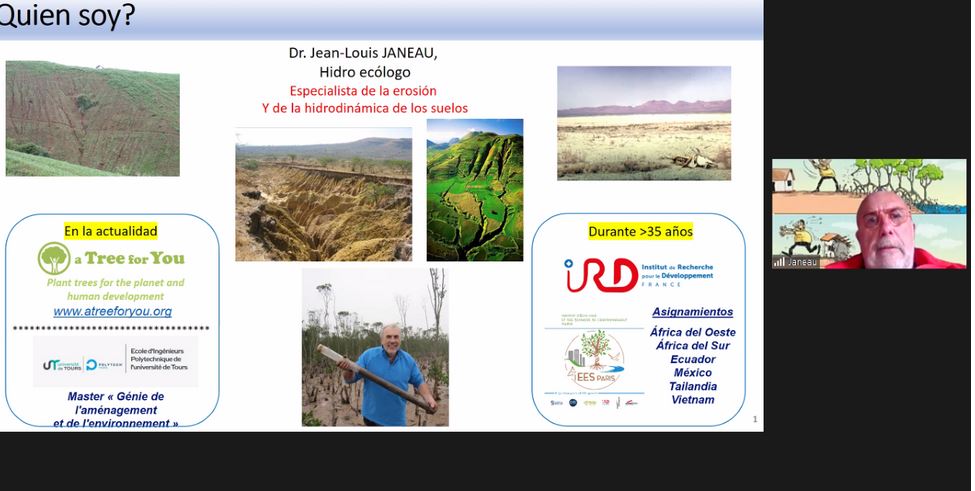 En la oportunidad el Dr. Janeau, especialista de Erosión y la hidrodinámica de los suelos, explicó el papel hidrológico de la montaña como fuentes y almacenamiento de agua, siendo crucial para las poblaciones. Asimismo, mostró que el uso del suelo y la cobertura vegetal en las zonas montañosas tiene un impacto directo en la cantidad de agua infiltrada y almacenada.