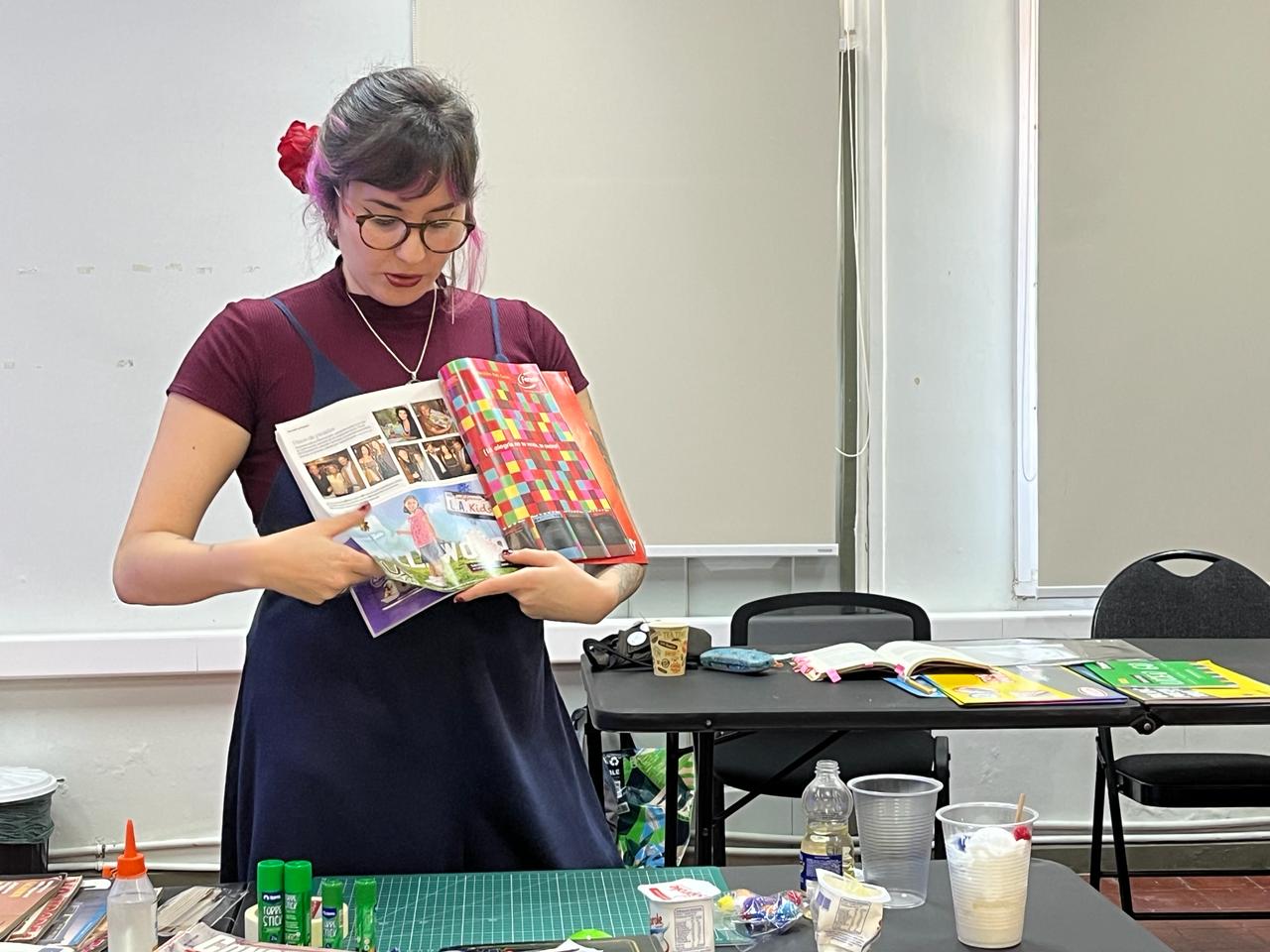 La estudiante de Terapea Ocupacional, Barbara, cuenta que le encanta aprender sobre feminismo y este taller le permitió hacerlo desde “el placer y la sexualidad”, además al estar mediado con prácticas artísticas, le ofreció la oportunidad de “salirse de lo que es puramente académico” e incorporar conocimientos y creación en un mismo espacio junto a otras mujeres.