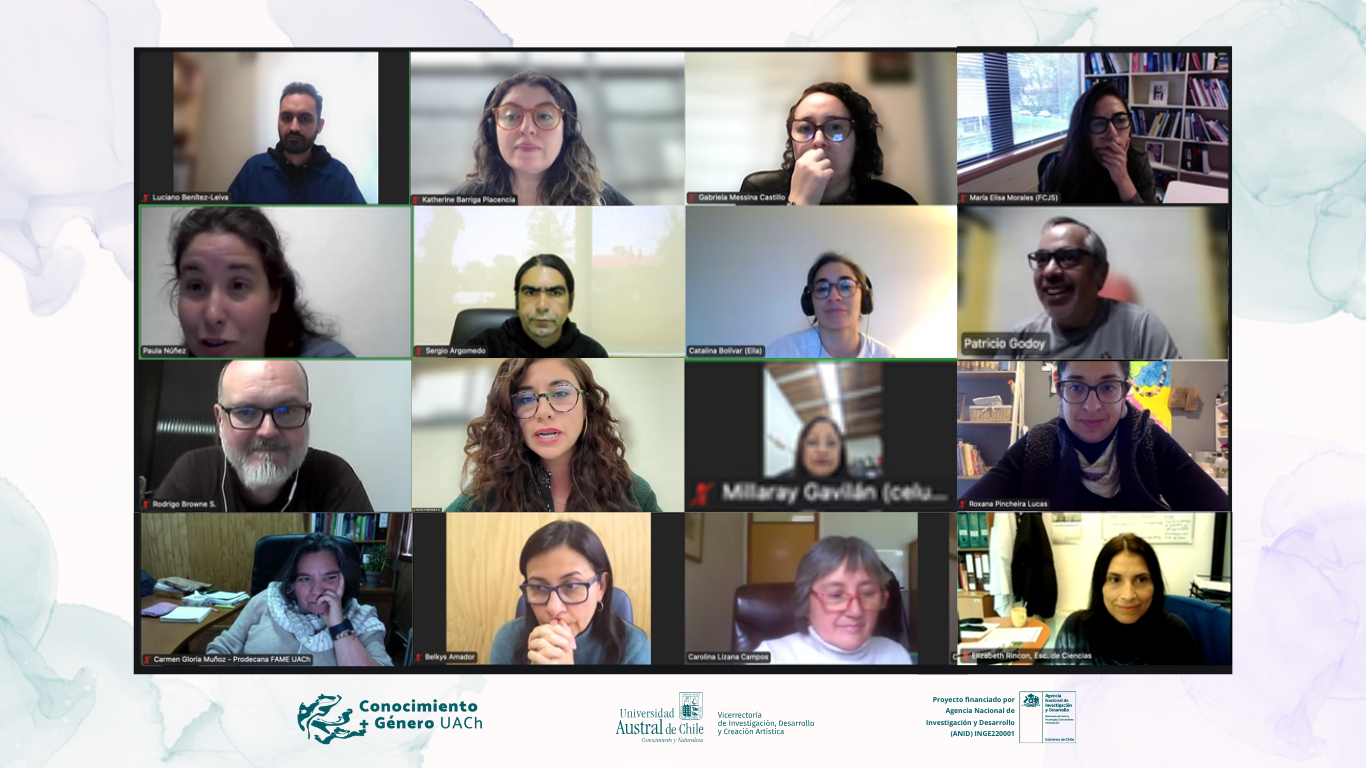 Entre el 23 y el 29 de abril, el Proyecto InES “Conocimiento + Género” de la Universidad Austral de Chile, llevó a cabo una serie de cinco talleres interdisciplinarios enfocados en la construcción participativa de guías para la investigación con perspectiva de género. Las sesiones, realizadas de manera virtual, fueron moderados por el equipo InES Género UACh junto a la Dra. Paula Núñez, especialista en estudios de género, y contaron con la participación de más de 25 personas de diversas áreas disciplinares.