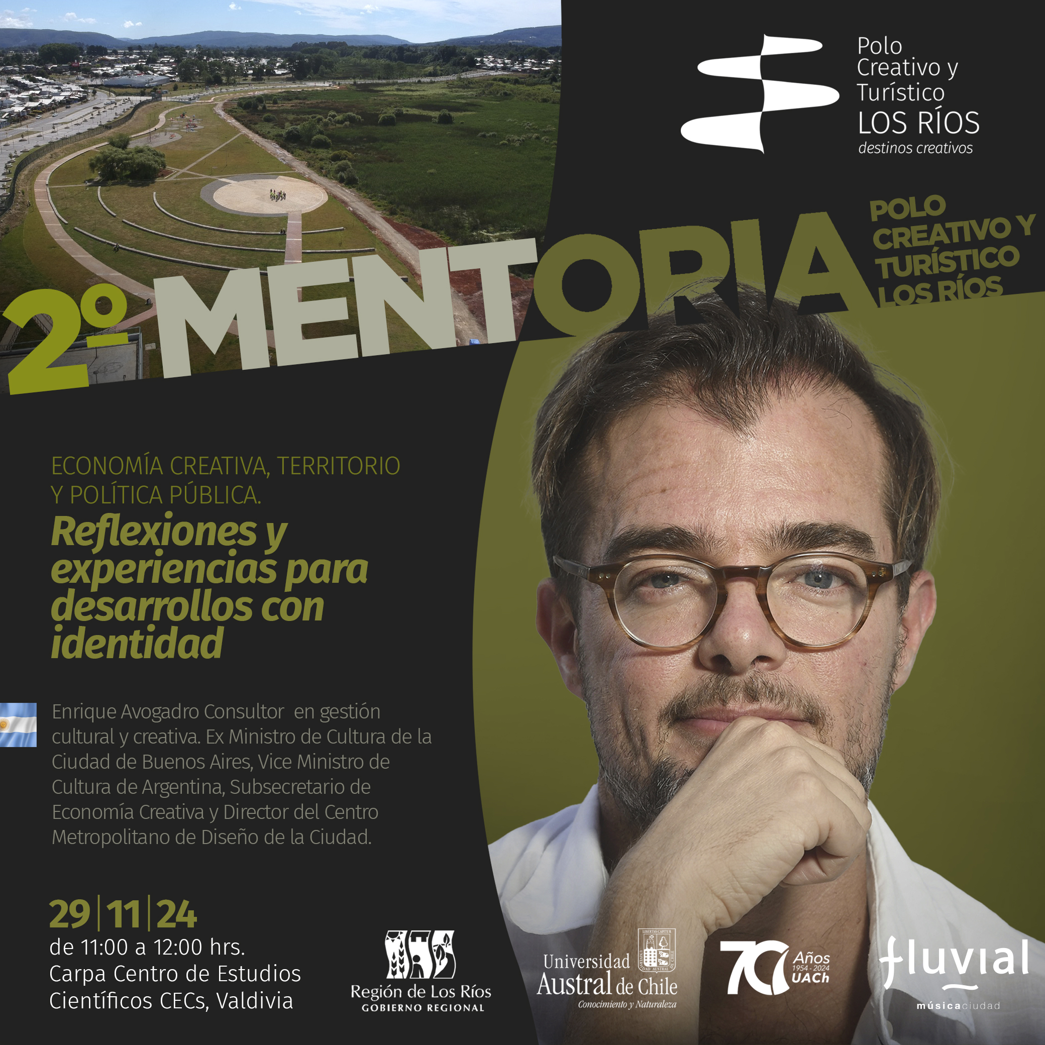 Con una ponencia de Enrique Avogadro, quien tiene vasta experiencia liderando el desarrollo de distritos creativos en Buenos Aires, Argentina, el proyecto FIC Polo Creativo y Turístico Los Ríos, ejecutado por la Universidad Austral de Chile, invita a quienes integran el sector turístico y creativo regional a ser parte de una nueva experiencia dialogante y formativa, con acceso a contenidos y redes de alta