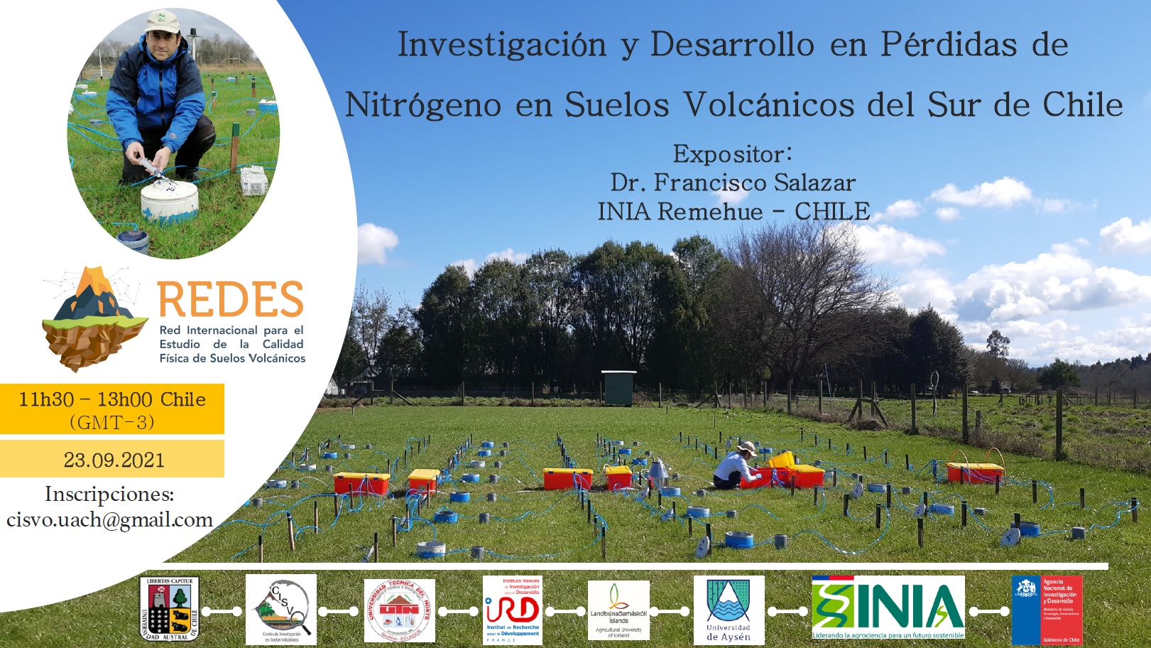 “Investigación y Desarrollo en Pérdidas de Nitrógeno en Suelos Volcánicos del Sur de Chile” es la charla que ofrecerá el Dr. Francisco Salazar, investigador de INIA – Remehue como parte del ciclo de seminarios online organizado por el proyecto REDES 180168