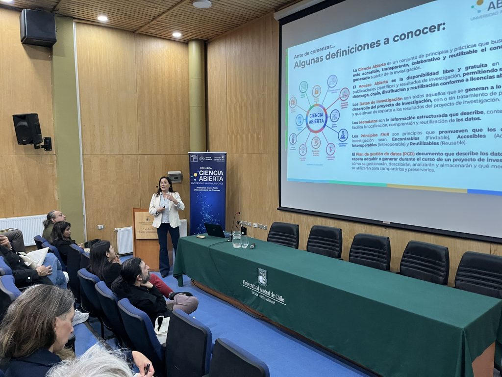 Las charlas estuvieron dirigidas por la Directora del Proyecto InES Ciencia Abierta y gestora de proyectos del Departamento de Investigación VIDCA, Yertty Silva, y la Directora Alterna de esta iniciativa y académica de la Facultad de Ciencias, Dra. Claudia Quezada. Con la implementación de este proyecto la UACh está preparada para dar respuesta a las nuevas exigencias en el ámbito del acceso abierto en las investigaciones financiadas con fondos estatales.