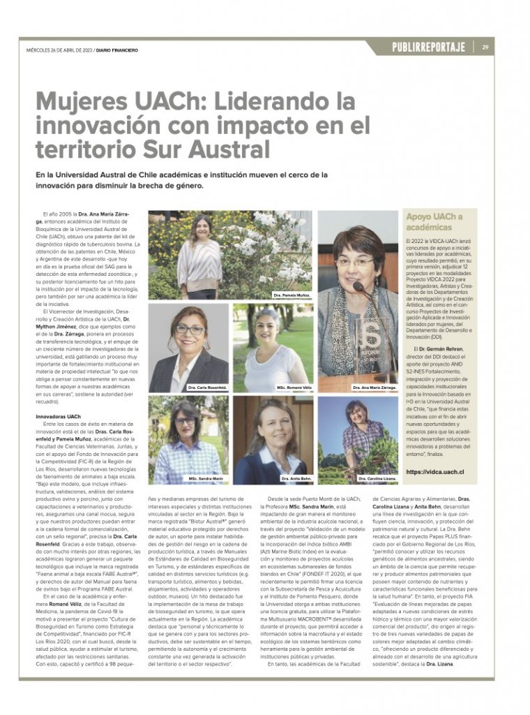 En 2005, la Dra. Ana María Zárraga, entonces académica del Instituto de Bioquímica de la Universidad Austral de Chile, obtuvo una patente del kit de diagnóstico rápido de tuberculosis bovina. La obtención de las patentes en Chile, México y Argentina de este desarrollo -que hoy en día es la prueba oficial del SAG para la detección de esta enfermedad zoonótica- y su posterior licenciamiento fue un hito para la institución por el impacto de la tecnología, pero también por ser una académica la líder de la iniciativa.