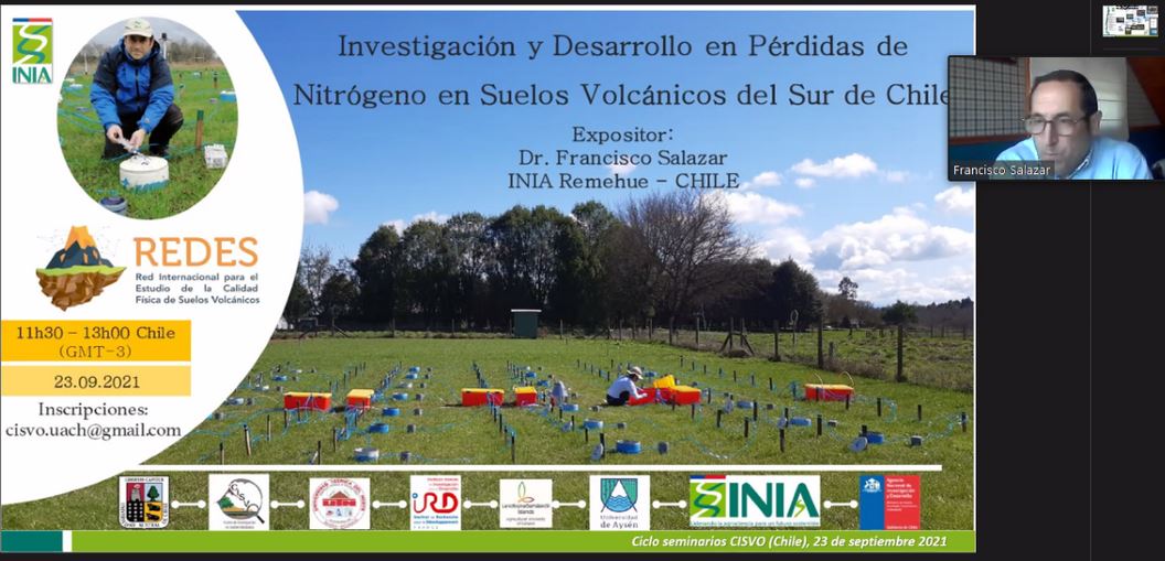 Una interesante exposición titulada “Investigación y Desarrollo en Pérdidas de Nitrógeno en Suelos Volcánicos del Sur de Chile” ofreció el Dr. Francisco Salazar, investigador de INIA Remehue, líder del Grupo de Impacto Ambiental del Instituto de Investigaciones Agropecuarias (INIA), como parte del ciclo de seminarios online organizado por el proyecto REDES 180168.