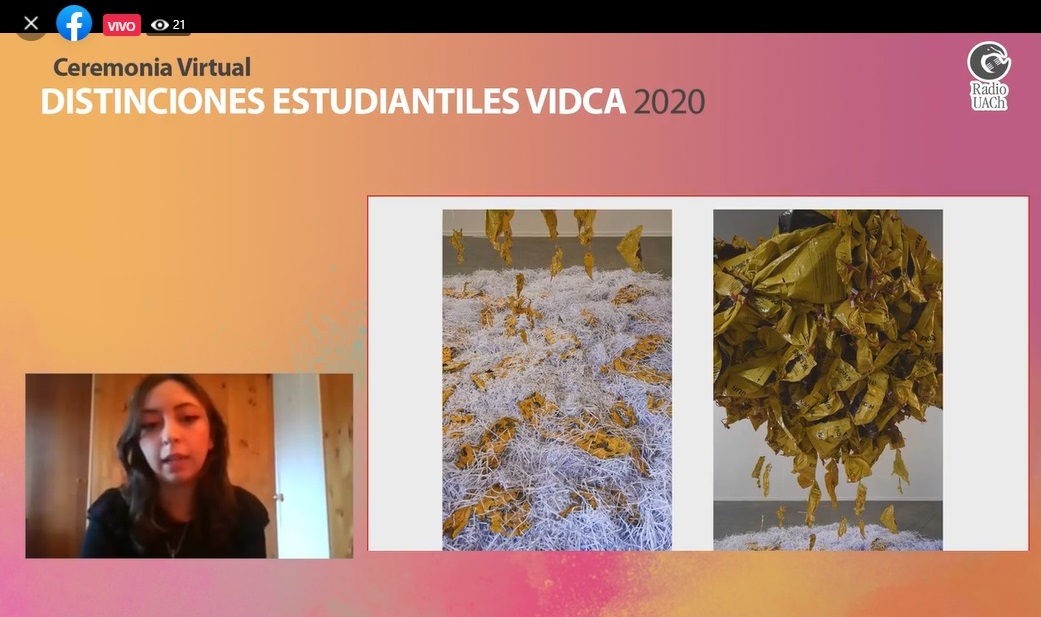 El premio Medalla “Fernando Santiván” fue otorgado a Camila Contreras Tapia, egresada de Licenciatura en Artes Visuales de la Facultad de Arquitectura y Artes por su trabajo de tesis “Post Festum”. La reflexión propuesta por la obra de la joven artista gira en torno a la pulsión implicada en la acumulación de excedentes, asociados a procesos de industrialización.